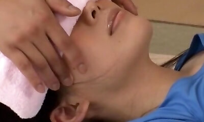 Japanese Cheating wife get massage fuck infornt of his Husband.