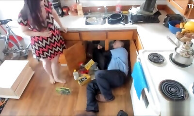 Stepmom and son have anal bang-out in the kitchen. Mom with big ass real sonny